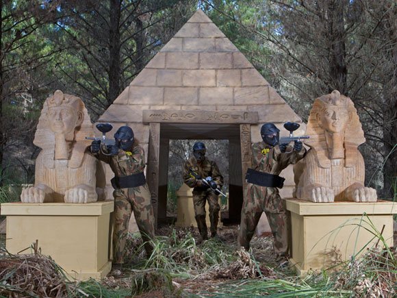 The Archaeological Team initiates the mission from the outer perimeter of the desert dig site. Their primary goal is to breach the towering stone pyramid, locate the ancient idol, and successfully extract it to the designated safe zone. Speed and coordination are essential to avoid being pinned down in the open sand. The Mercenary Force starts embedded within the ruins and the shadows of the pyramid. Their sole objective is to defend the tomb at all costs, preventing the explorers from reaching the inner chamber or intercepting the artifact during the extraction phase. A critical strategic element of this zone is the Giant Sphinx. This massive structure provides essential heavy cover for teams moving between the pyramid and the extraction point. Using the Sphinx as a tactical shield is the only way to escape the tomb with the idol intact while under heavy fire. The Tomb Raider mission is played over two intense rounds, allowing each team to switch roles between the daring hunters and the fortified defenders. Players are advised to stock up on paintballs before the match begins, as the wide-open sightlines of the desert landscape often lead to high-intensity firefights where maintaining a constant barrage of covering fire is key to victory.
